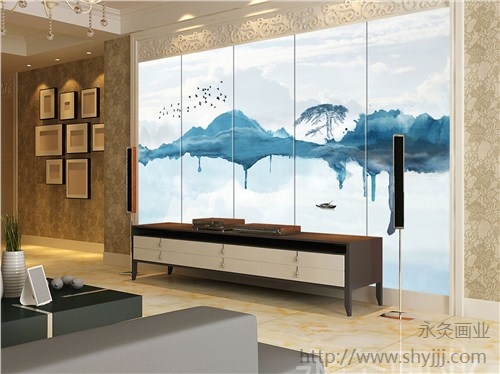 硬包图片个性无缝壁画简约山水挂画羊谷供