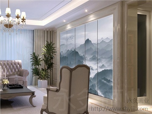 上海硬包厂家墙面挂画水墨山水壁画永灸供