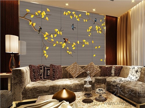 软包背景墙_新中式花鸟叶子壁画硬包软包永灸供