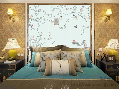 软包背景墙_酒店客房朦胧意境山水永灸供