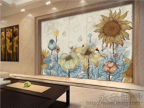 软包背景墙_新中式个性艺术喷绘壁画软包硬包永灸供